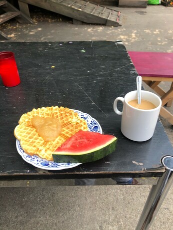 free waffles and coffee at Haus der Materialisierung in #berlin right now! I live this city.